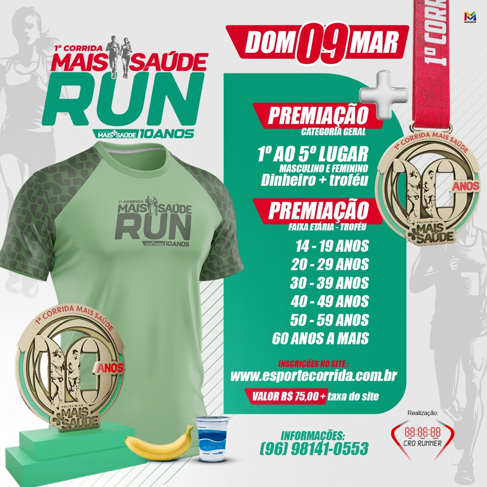 - Medalha de participação (entregue pós-corrida)
