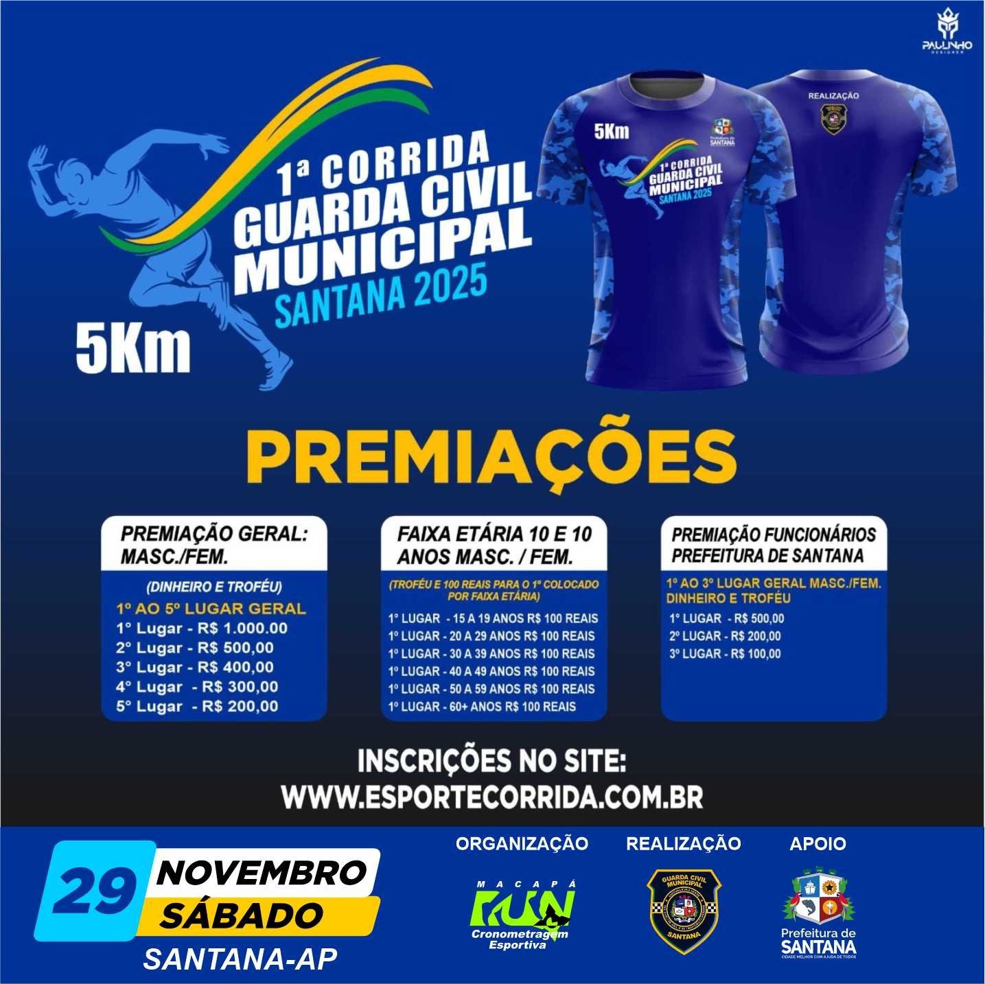 Corrida do Serralheiro e Construtor 2026 Data: Domingo, 12 de Abril de 2026Horário: Largada às 06h00Modalidade: Geral (5km)Inscrição: R$ 80,00 (1º lote)