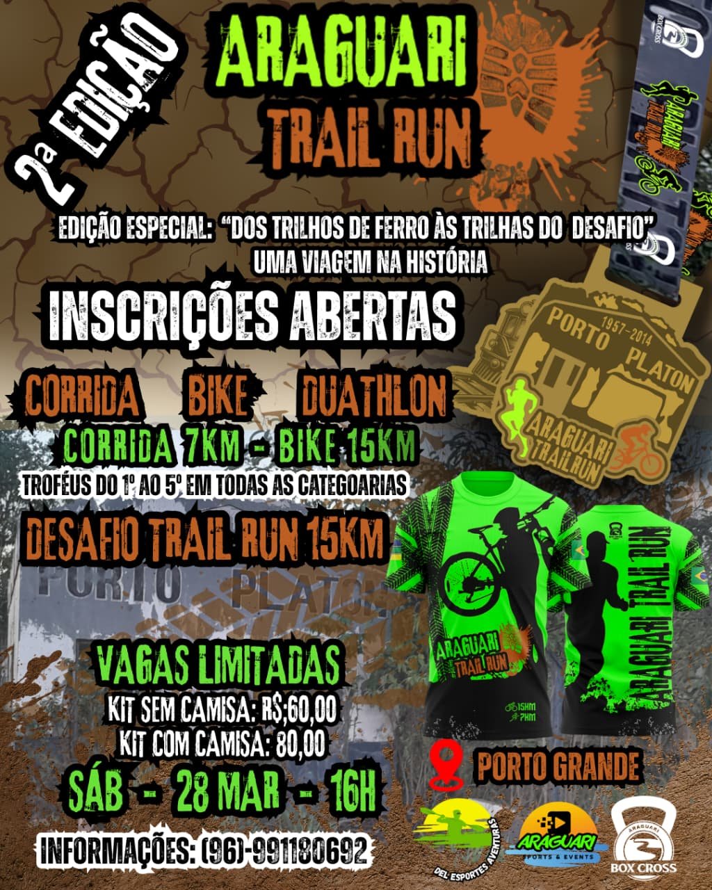 Estão ABERTAS as inscrições para a corrida mais desafiadora de Porto Grande. 🏃♂️ Corrida de trilha – 7 km🚴 Bike trail – 15 km🔥 Duathlon